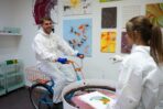 Do speciálních malířských hrazd nalijete akrylové barvy a v kombinaci s rotačním stolem a gravitací na plátně vznikají okouzlující barevné spirály.
