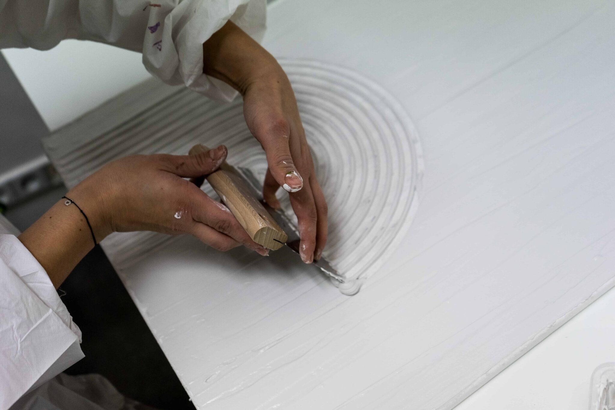 Texturovací pastu nanesete na plátno a pomocí špachtlí a nástrojů vytváříte jedinečné vzory. Výsledkem jsou moderní minimalistické 3D obrazy, které lze natónovat barvou.
