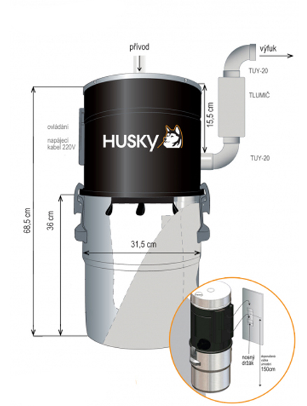 Nový centrální vysavač Husky Cyklonse je dodáván včetně sady nástavců, teleskopické tyče a hadicí 9,1 m. Jedná se o velice výkonnou vysavačovou jednotku ve speciální limitované edici. Tento centrální vysavač je ideální pro střední a velké rodinné domy. Nabízí velmi silný výkon a uživatelský komfort při vysávání. Jeho "srdce" tvoří průmyslový Bypass motor. Model Cyklon uspokojí i ty nejnáročnější zákazníky co se týká požadavku na výkon, spolehlivost a minimální údržbu. Upřednostněte kvalitu, výkon a dlouhou životnost před spotřebním zbožím!