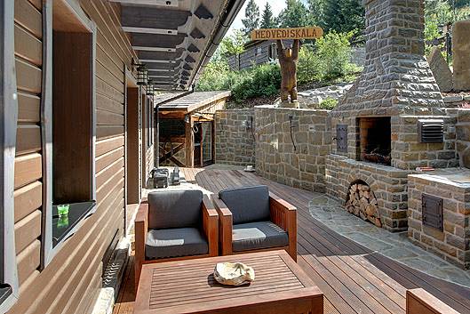 Dřevěná chata s vlastním wellness uprostřed lesa! Chata Medvědí skála se nachází na samotě u obce Pstruží u lesa a u potoka. Roubenka ubytuje 10 osob v 5 ložnicích, (2 koupelny, 3x WC). Ubytování je k dispozici pouze pro Vás. Pobyt s malým psem je povolen za poplatek. K dispozici je manikúra, sauna, masáže, pedikúra a vířivka. Venku se nachází ohniště, altánek, venkovní posezení, vnější krb, terasa a gril. Ubytování je vhodné pro rodiny s dětmi, k dispozici je dětské hřiště, dětský koutek, hračky, dětská židle, dětská postýlka, prolézačka, pískoviště a dětská houpačka. Parkování je možné pro 5 aut při objektu.
