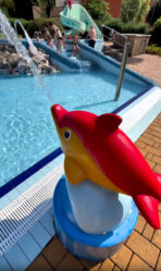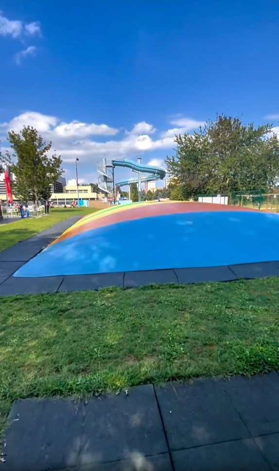 Venkovní část je super. Tři bazénky pro menší děti včetně skluzavky a vodotrysků. Syn si hodně užil barevné dětské hřiště s gumovým povrchem (oceňuju, že ani v létě nepálí) s velrybou, která osvěží No a vzduchové trampolíny? Ty milujeme! V letní dny je otevřená i vnitřní část, která je též skvělá, ale my jsme byli většinu času venku.