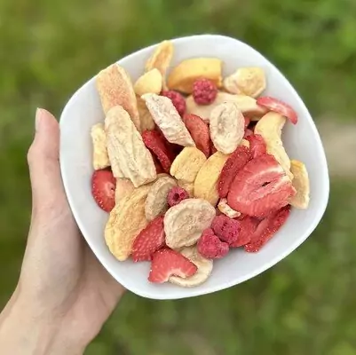 Lyofilizace je speciální proces sušení, při kterém je ovoce zmrazeno a následně sušeno ve vakuu. Díky tomuto procesu se z ovoce odstraní veškerá voda, ale zachovají se všechny důležité vitamíny, minerály i chuť. Výsledkem je mrazivě dobré lyo ovoce, které je křehké, lehké a plné chuti. Je to jako cestování v čase – ovoce je jako čerstvě sklizené, i když od té chvíle uplynulo mnoho měsíců.