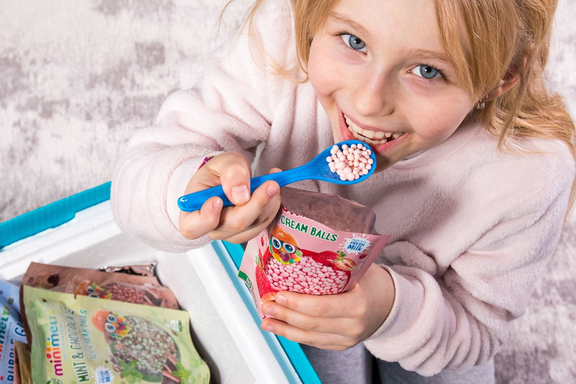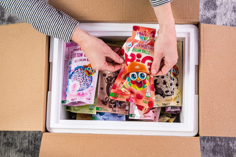 To nejlepší jsme ukryli uvnitř! Modrý box je každopádně naším poznávacím znamením! Máme o něm několik zajímavostí. :) 4 varianty – vyberete si velikost boxu, dle vlastního apetitu, který, jak dobře víme, roste s mírou konzumace. To Vy si vybíráte své oblíbené příchutě! Jednoduchá matematika – podívejte se, kolik porcí zdarma můžete obdržet, pokud si zvolíte větší box! Výhodou většího množství porcí v boxu je, že získáváte mnohem více volného času a odpočinku během vychutnávání zmrzliny! Jíme rukama – to je také určitá varianta, spíše bychom Vám ale doporučili si zdarma objednat lžičky, které můžete využívat opakovaně! Lze je také pohodlně umýt v myčce nádobí. Trocha rozmanitosti – můžete zmrzlinu jíst přímo ze sáčku, ale máme pro Vás také připraveno jedinečné příslušenství, které naleznete v záložce „Příslušenství”. Můžete si objednat kelímky a kšiltovky, které jistě dodají kouzlo oslavě narozenin Vašich dětí nebo rodinnému setkání. Pomalu končíme, zbývá už jen jedno! Vaše zásilka bude zabezpečena a vyplněna suchým ledem! Zmrzlinu Vám doručíme zmrzlou a plnou intenzivních chutí!